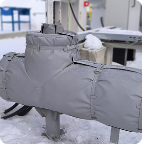 Чехлы представляют собой конструкцию из специальной промышленной ткани защищающей термочехол от ультрафиолетовых лучей, погодных условий, агрессивного воздействия химических реагентов, механических воздействий. Теплоизоляционный слой может состоять из теплоизоляционных материалов в виде вспененного каучука, минеральной ваты, иглопрошивного мата. Для удобства использования предусмотрены специальные крепление обеспечивающие быстрый монтаж а так же демонтаж теплоизоляционной оболочки.